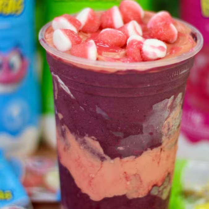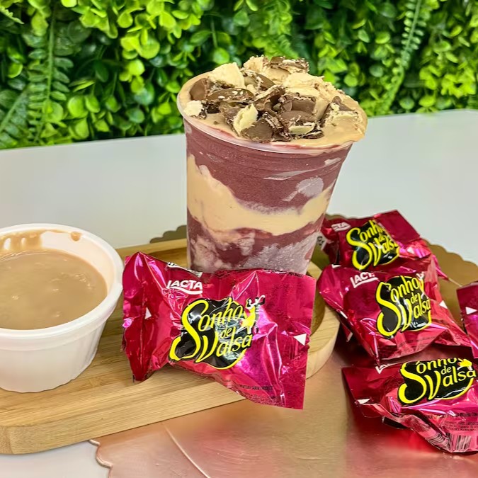 Açaí cremoso + pedacinhos de Sonho de Valsa = combinação perfeita! Doce na medida, crocante, refrescante e viciante. Uma mistura que vai direto pro topo das suas favoritas!