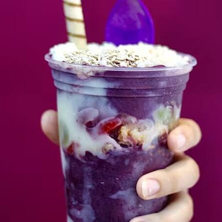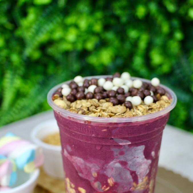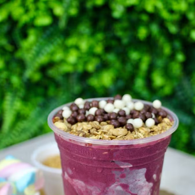 Atenção: esse aqui é puro vício! Açaí cremoso do jeitinho certo, Nutella generosa, amendoim crocante e Ovomaltine pra dar aquela explosão de textura e sabor. É doce, é crocante, é tudo ao mesmo tempo! Cada colherada é um combo de felicidade.