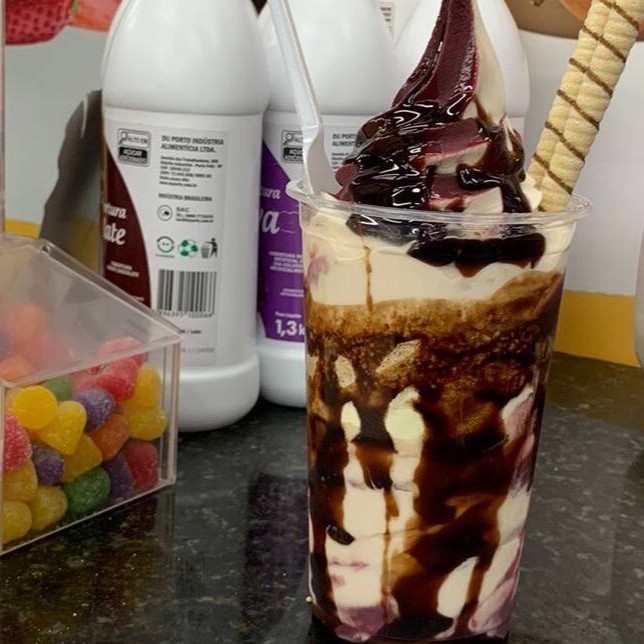 Escolha o sabor do sorvete e cubra com uma deliciosa calda de banana. Complete com amendoim crocante ou paçoca, conforme sua preferência. Uma sobremesa personalizada que combina o melhor do sorvete com um toque especial!