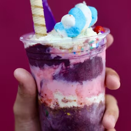 Desfrute do nosso Sundae de Frutas Vermelhas, com uma cobertura refrescante e doce de frutas vermelhas. Escolha o sabor do sorvete que você mais gosta e adicione os complementos que desejar para criar uma sobremesa personalizada e deliciosa.