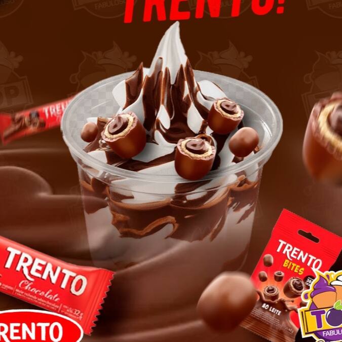 Saboreie o Super Top Trento, com sorvete de baunilha cremoso coberto com uma camada de chocolate e repleto de Trentos crocantes. Uma combinação deliciosa que mistura a suavidade do sorvete com a textura irresistível dos Trentos em cada mordida!