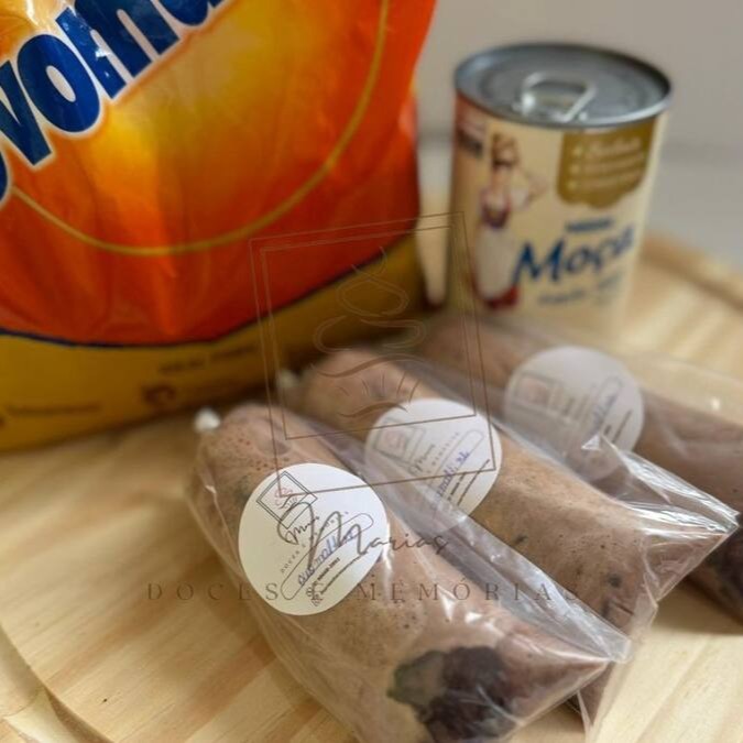 feito com pó de ovomaltine, recheado com pasta de ovomaltine