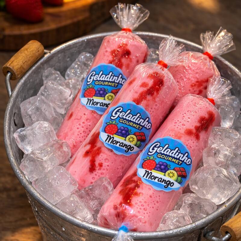 Sacolé Gourmet De Morango Com Geleia Artesanal
