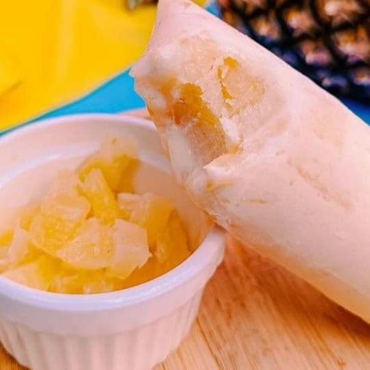 Deliciosa combinação da base cremosa de leite Ninho com geléia caseira de abacaxi.