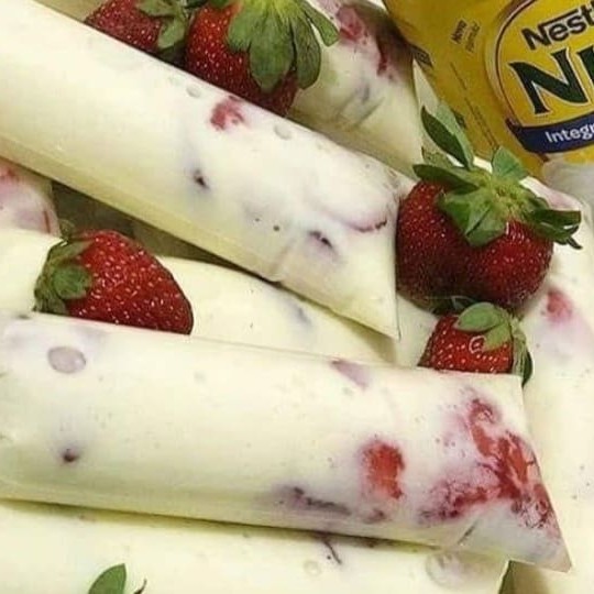 A combinação da base cremosa de leite Ninho com geléia caseira feita com morangos frescos.