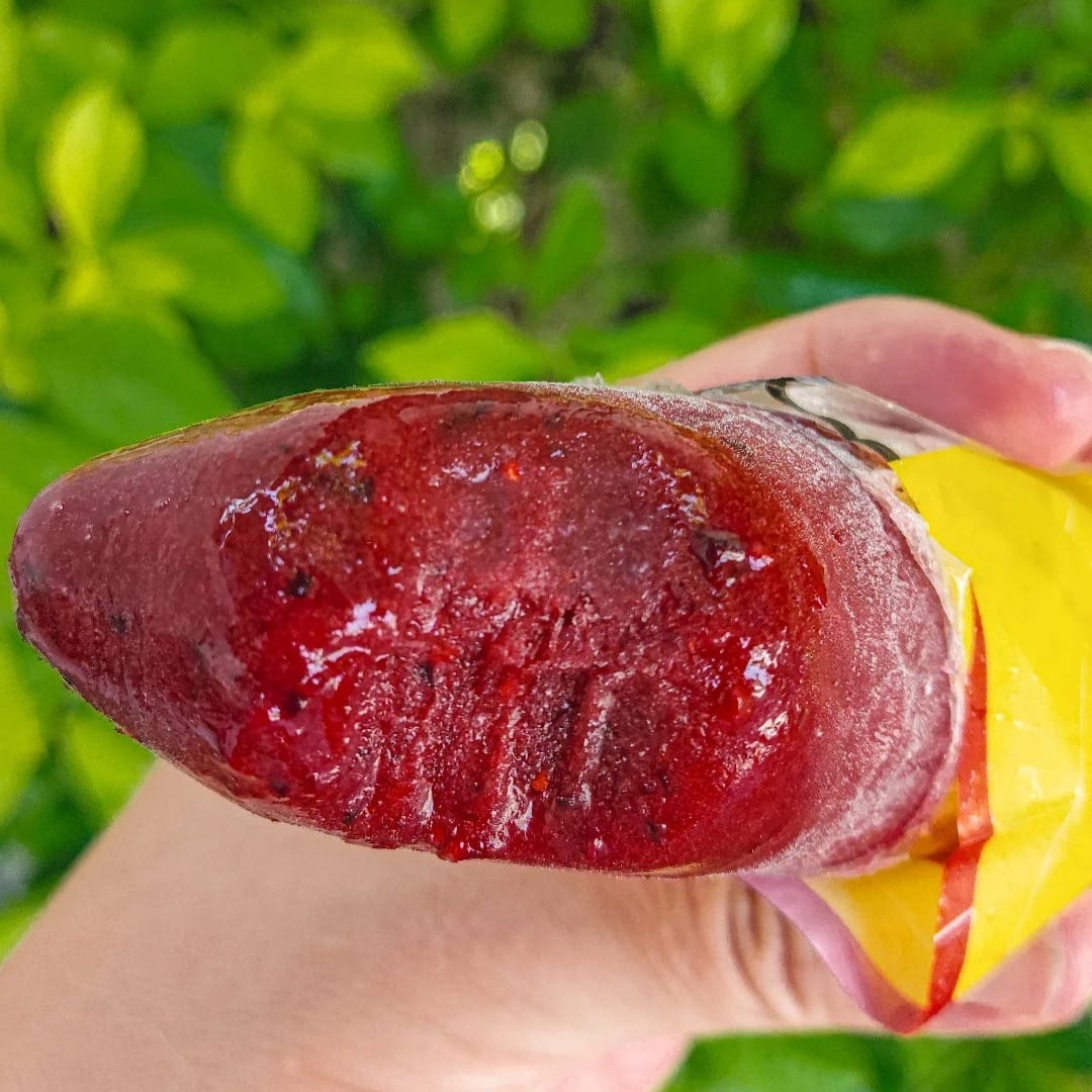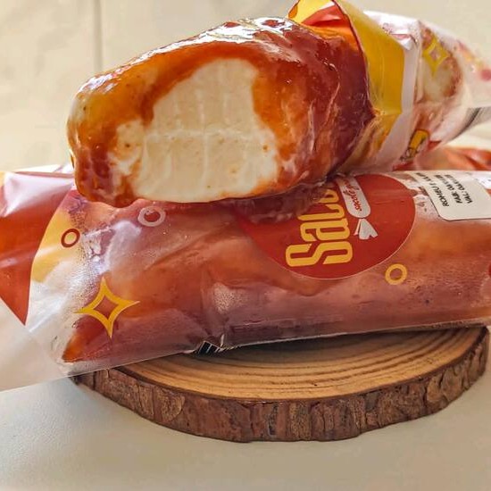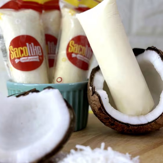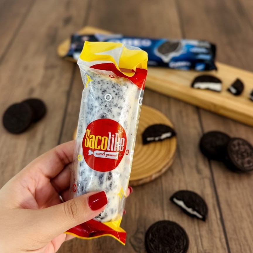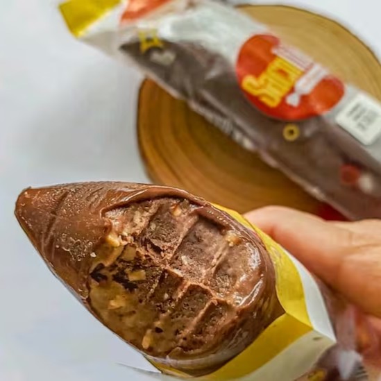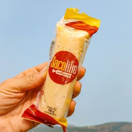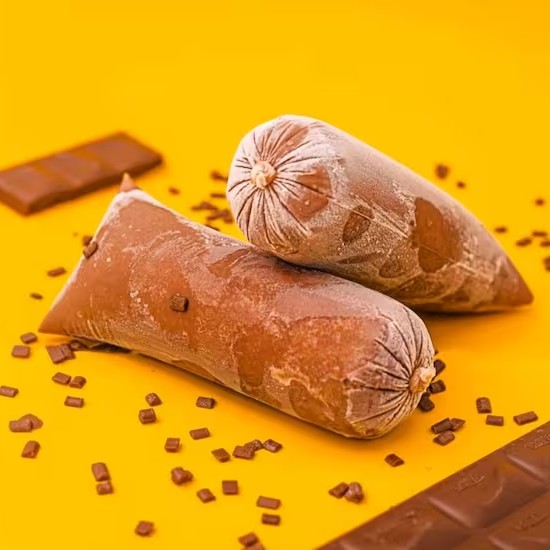Uma irresistível combinação de chocolate meio amargo e doce de leite. Inspirado no classico Chicabon, nosso Sacolé é recheado com pedaços de chocolate ao leite. Uma explosão de sabor!