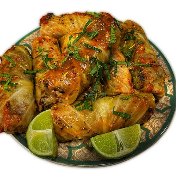 Com 6 unidades, ele é uma preciosidade de nossa culinária. Composto por camadas de folhas de repolho recheado com carne e arroz temperados.