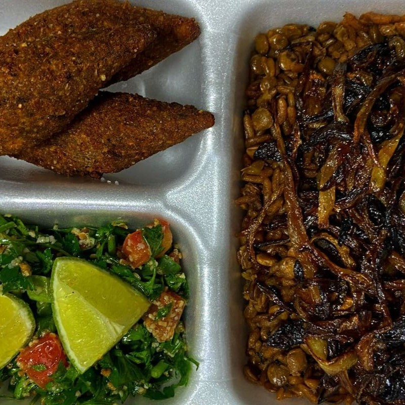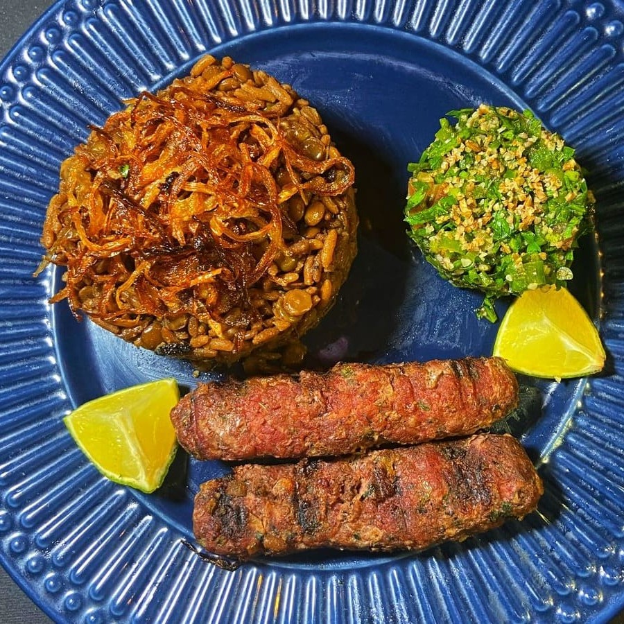 Uma opção magnífica para quem quer combinar a suculência, um paladar clássico e muito frescor. Vem com 2 kaftas, mjadra, tabule e cebola. #carne #árabe #marmita #quentinha #entrega #refeição #saudável #culinária #rápida