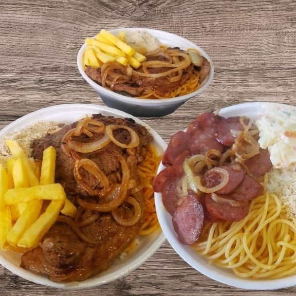Calabresa Acebolada : Nossa versão de calabresa acebolada é o complemento perfeito para uma autêntica comida caseira e saborosa. Preparada com carinho, a calabresa defumada é grelhada até ficar suculenta e macia. Em seguida, é saborosamente coberta com cebolas caramelizadas, que acrescentam um toque adocicado e uma textura agradável ao prato. Acompanhando de arroz feijão macarrão farofa.