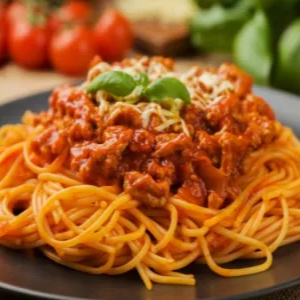 O Spaghetti à Bolonhesa com Queijo é feito com massa de espaguete cozida al dente, servida com um molho rico à base de carne moída, tomate, cebola, alho e temperos. O molho é cozido lentamente para intensificar os sabores. Para finalizar, o prato é polvilhado com queijo mussarela, que derrete e adiciona um toque cremoso e saboroso.