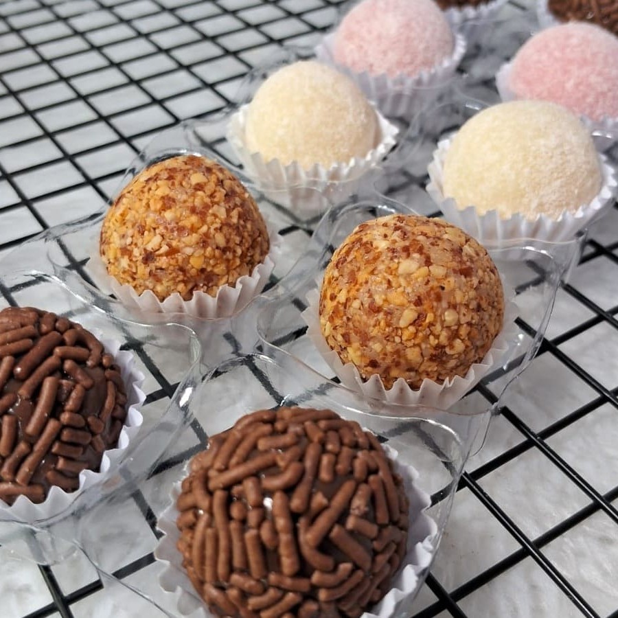 10 Docinhos de festa mistos. É composto por 4 sabores de docinhos. (Brigadeiro, Ninho, Moranguinho e Amendoim) Forminha n6 (10g)