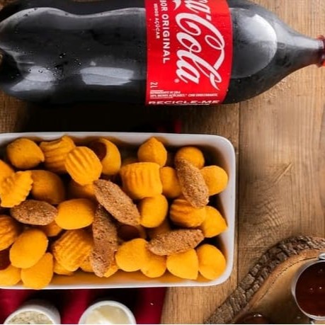 100 Salgadinhos Fritos + Coca Cola 2 Litros Bem Gelada