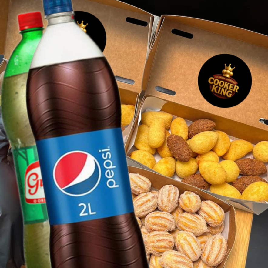 🔥 Combo 100 Salgadinhos + 20 Mini Churros + Refri 2l