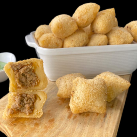 100 salgadinhos fritos, crocantes e sequinhos. Perfeito pra reuniões.