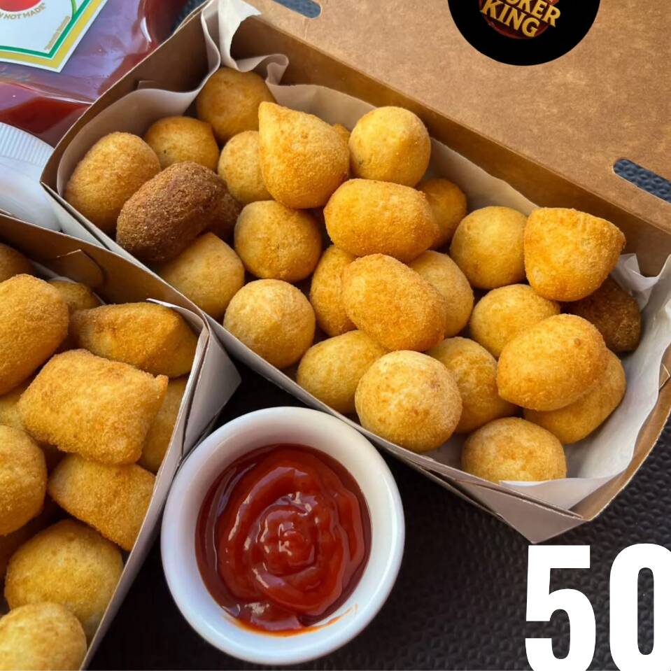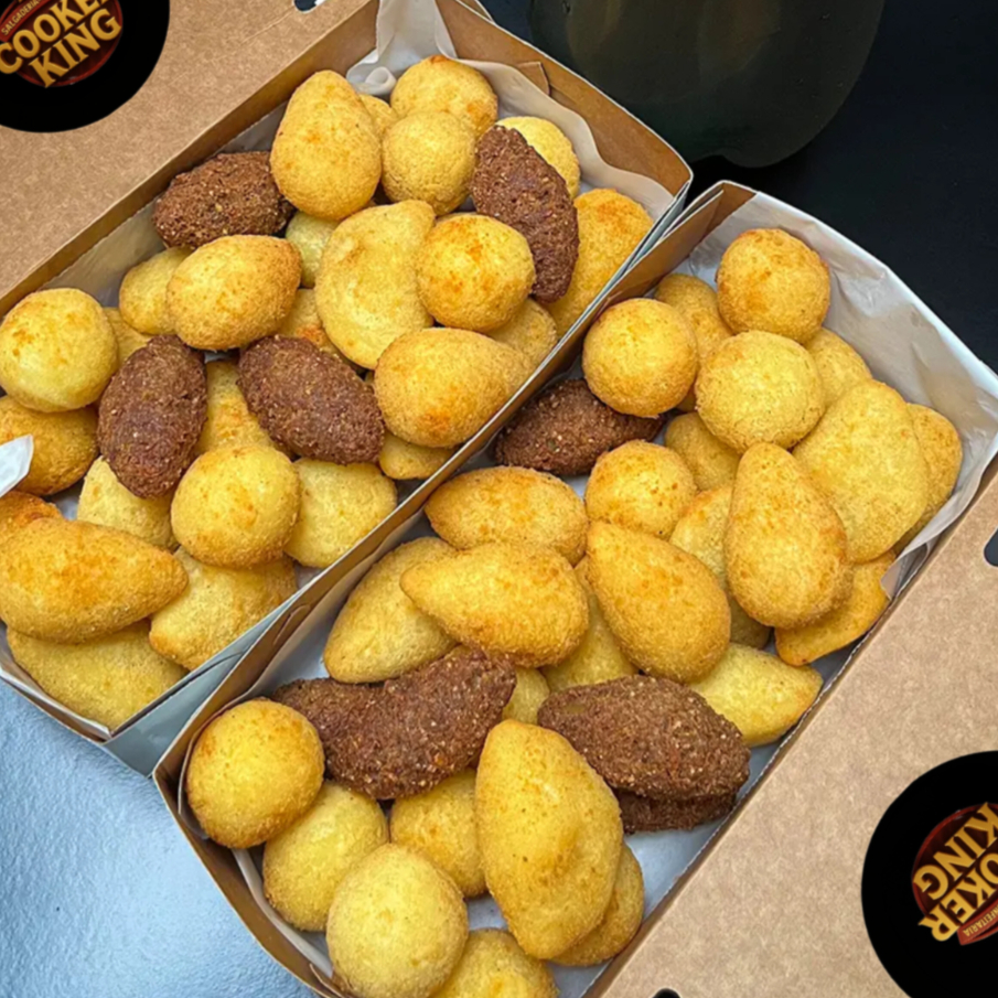 20 salgadinhos fritos na hora, crocantes e sequinhos.