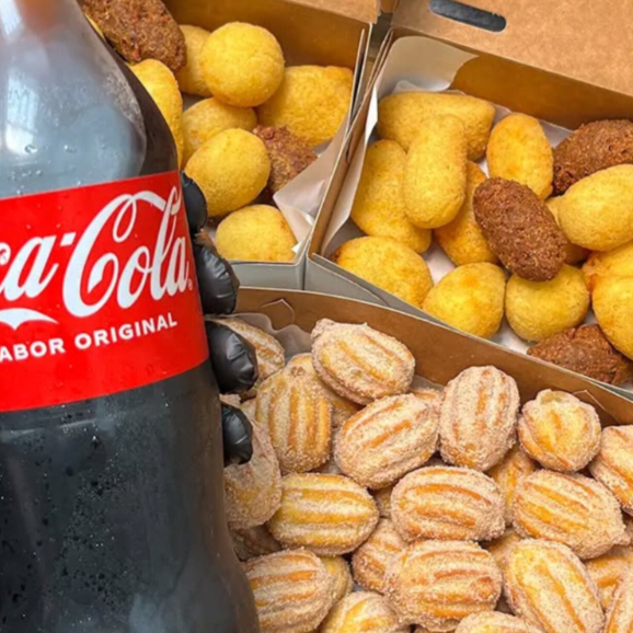 🎉 Combo Família 50 Salgadinhos + 10 Mini Churros + Refri Combo equilibrado: salgado + doce + bebida. Ideal pra dividir.