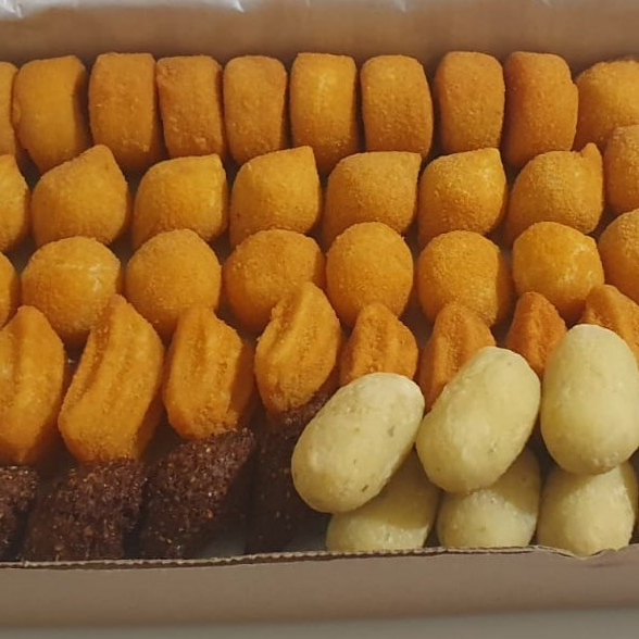 50 Salgadinhos Fritos Sortidos: Salsicha, Coxinha, Queijo, Quibe