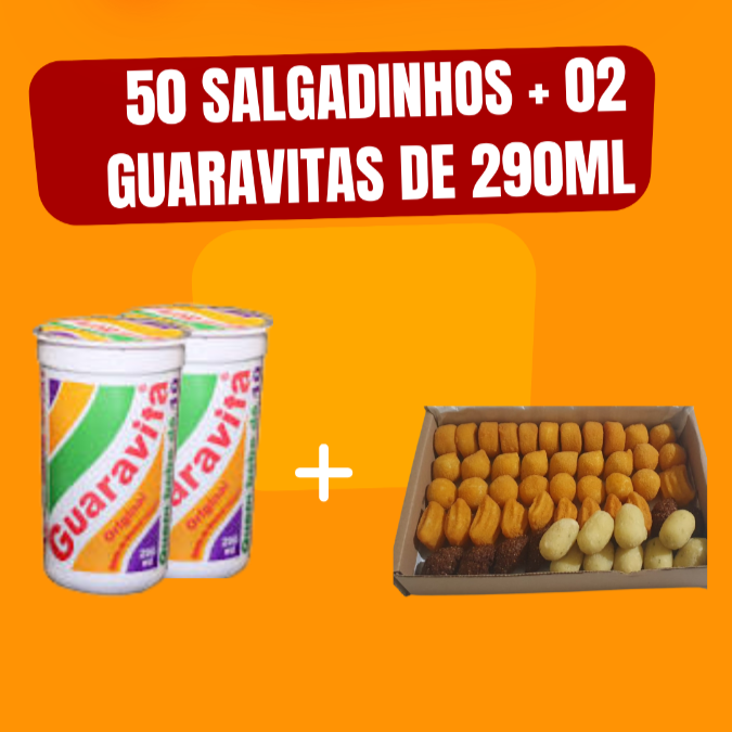 Combo Nós Dois - 50 Salgadinhos Fritos Sortidos + 2 Guaramor: Salsicha, Coxinha, Queijo, Quibe