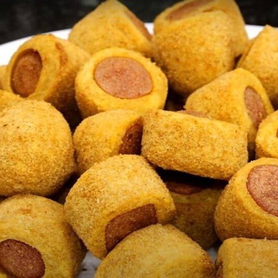 A massa que envolve a salsicha é cuidadosamente preparada para alcançar a crocância perfeita. Dourada por fora e macia por dentro, a textura da massa complementa o recheio suculento, criando uma harmonia de sabores e texturas em cada porção.