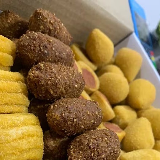 Nossos salgados possuem 20g em uma massa fina e saborosa. Além de crocante, sequinho, quentinho! + Bebida 1,5l