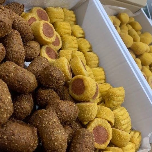 Nossos salgados possuem 20g em uma massa fina e saborosa. Além de crocante, sequinho, quentinho!