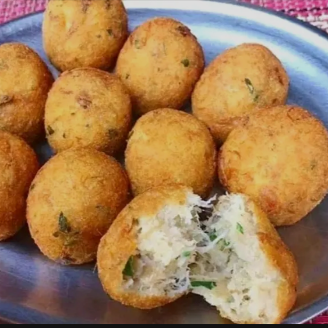 500g de Bolinho de bacalhau Fritos, +/- 23 unidades.
