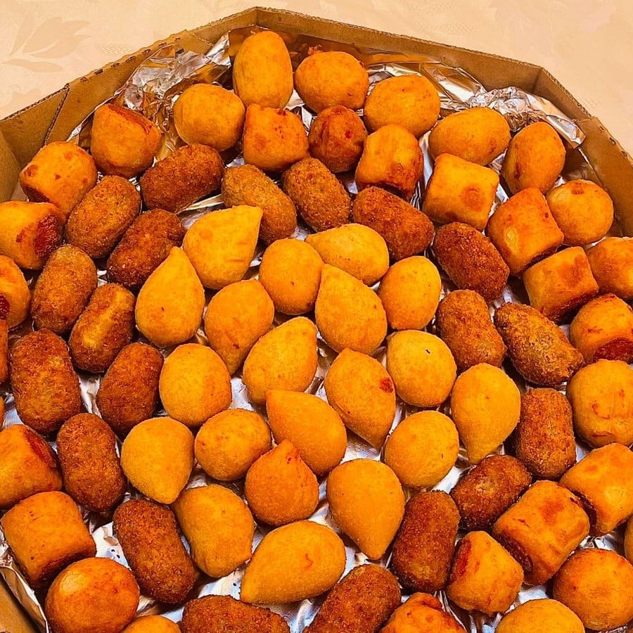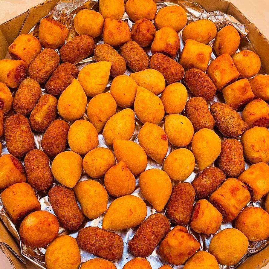 Mega Promoção! 100 salgados fritos irresistíveis (coxinha, bolinha de queijo, quibe e outros sabores deliciosos) A escolha perfeita para festas, reuniões ou matar a fome da galera. Peça agora e garanta sabor e praticidade!