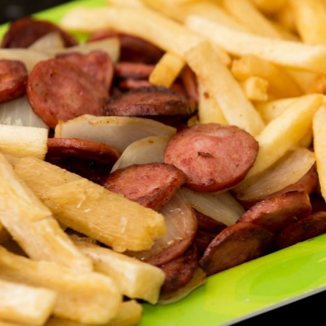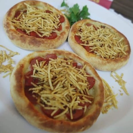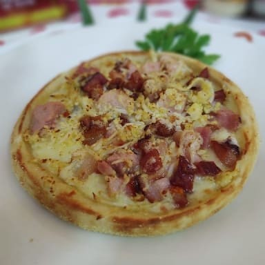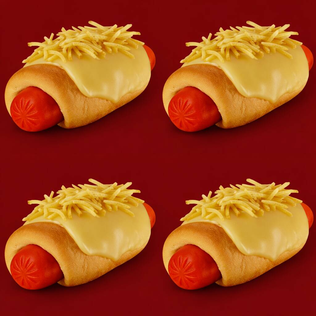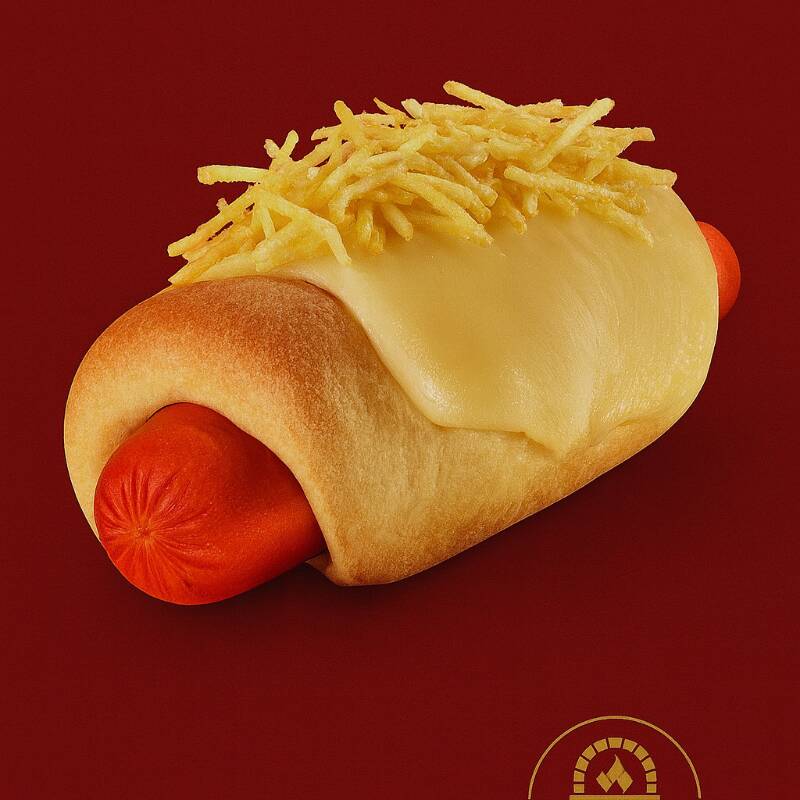 Massa recheada com molho especial, salsicha, queijo, mussarela e batata palha.