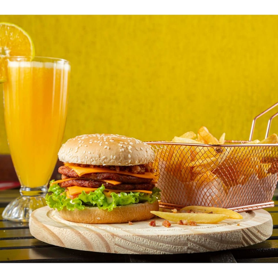 Pão de hambúrguer, alface, maionese, tomate, 2 carne hambúrguer, queijo cheddar, bacon e molho especial.