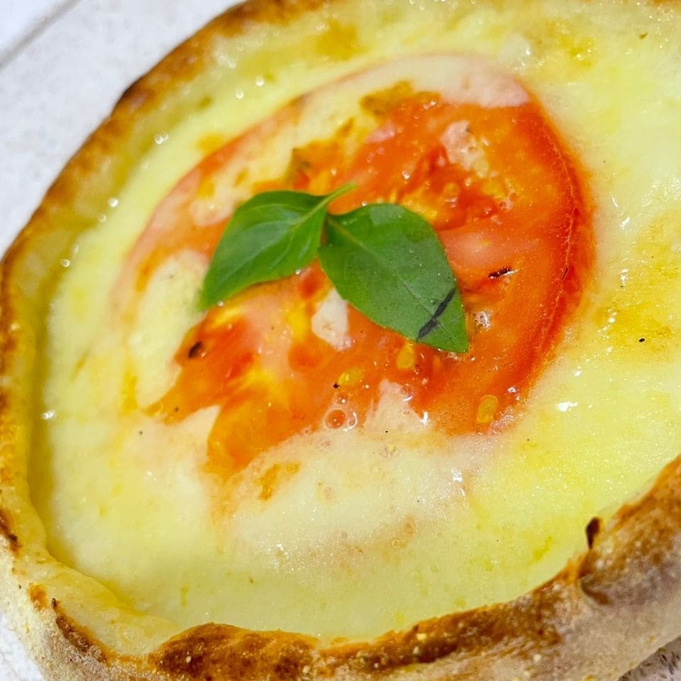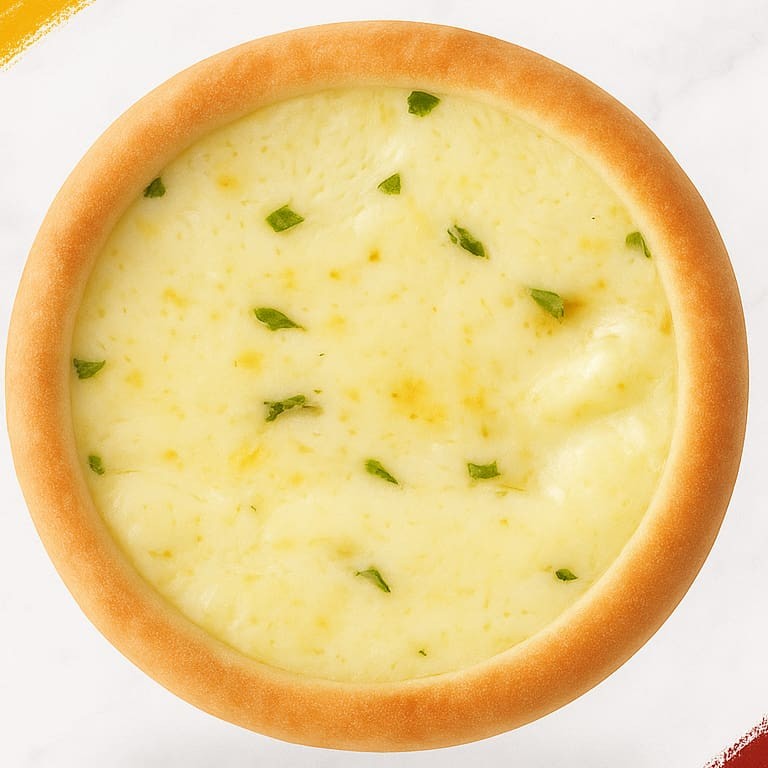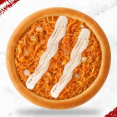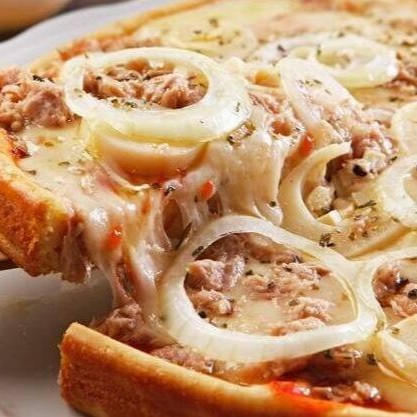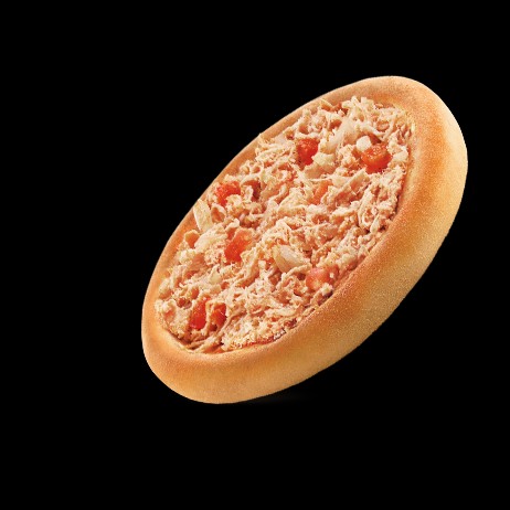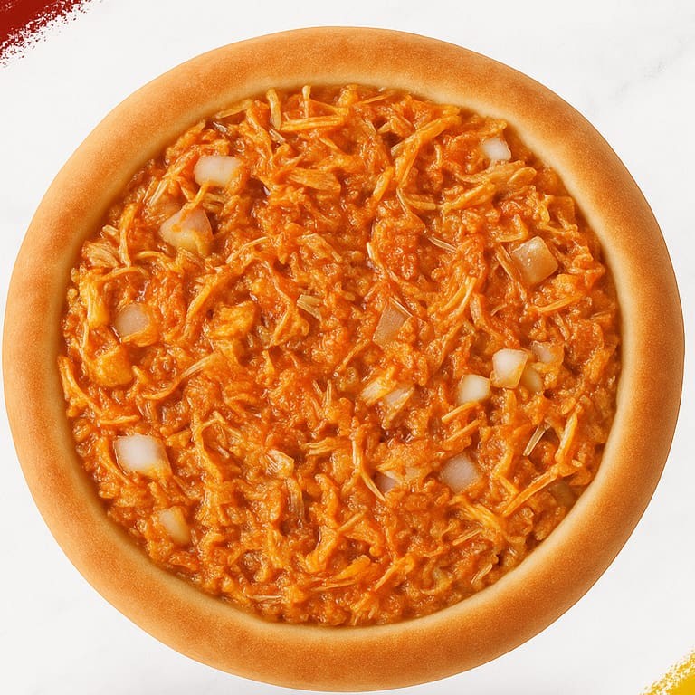 Frango desfiado ao sugo, Catupiry, tomate, cebola, soja e especiarias.