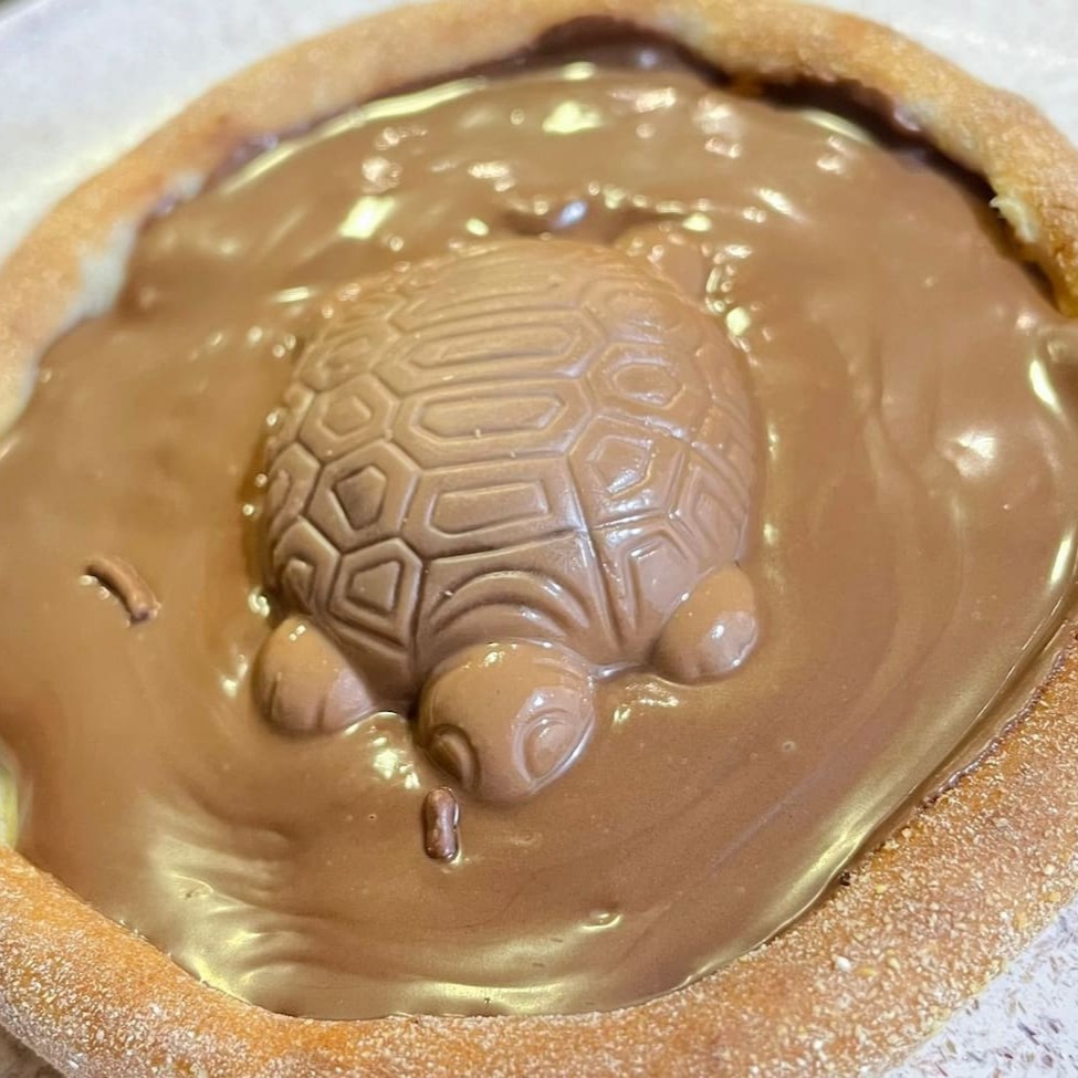 Chocolate de primeiríssima qualidade ao leite e uma tortuguita.