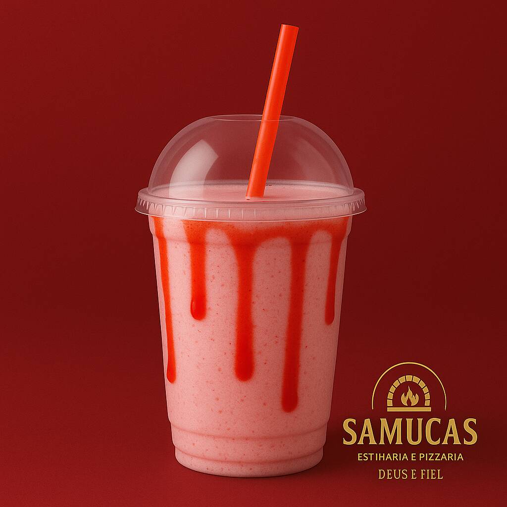 Aquele delicioso sorvete de baunilha com calda de morango com pedaços.