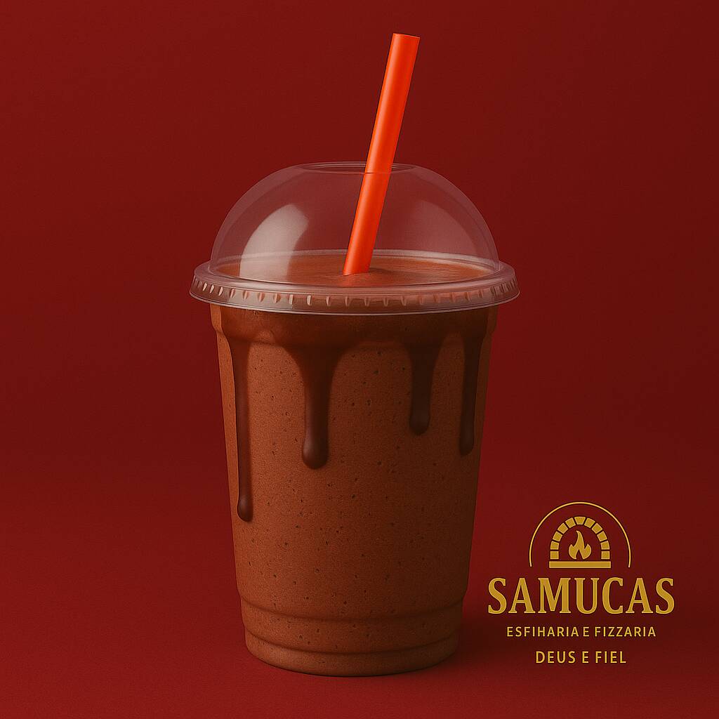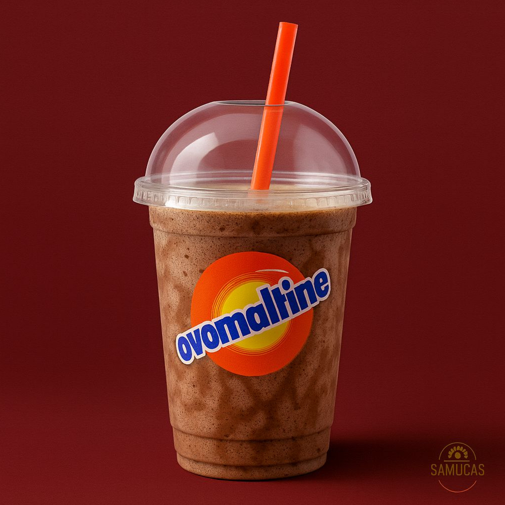 Um delicioso sorvete de baunilha, leite, pedaços de Ovomaltine e calda de chocolate.