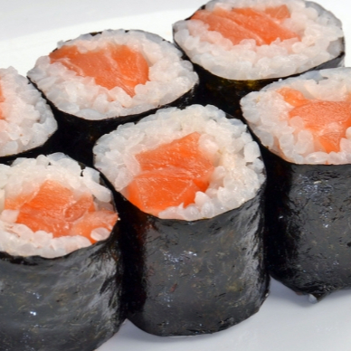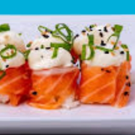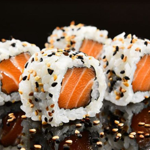 Enrolado de nori, arroz, salmão, cream cheese , cebolinha e gergelim.