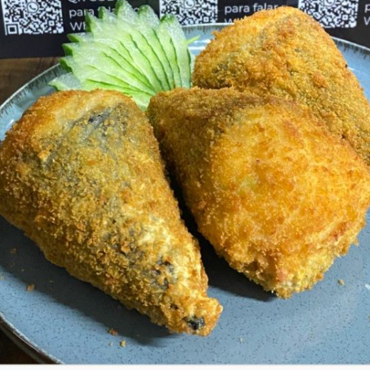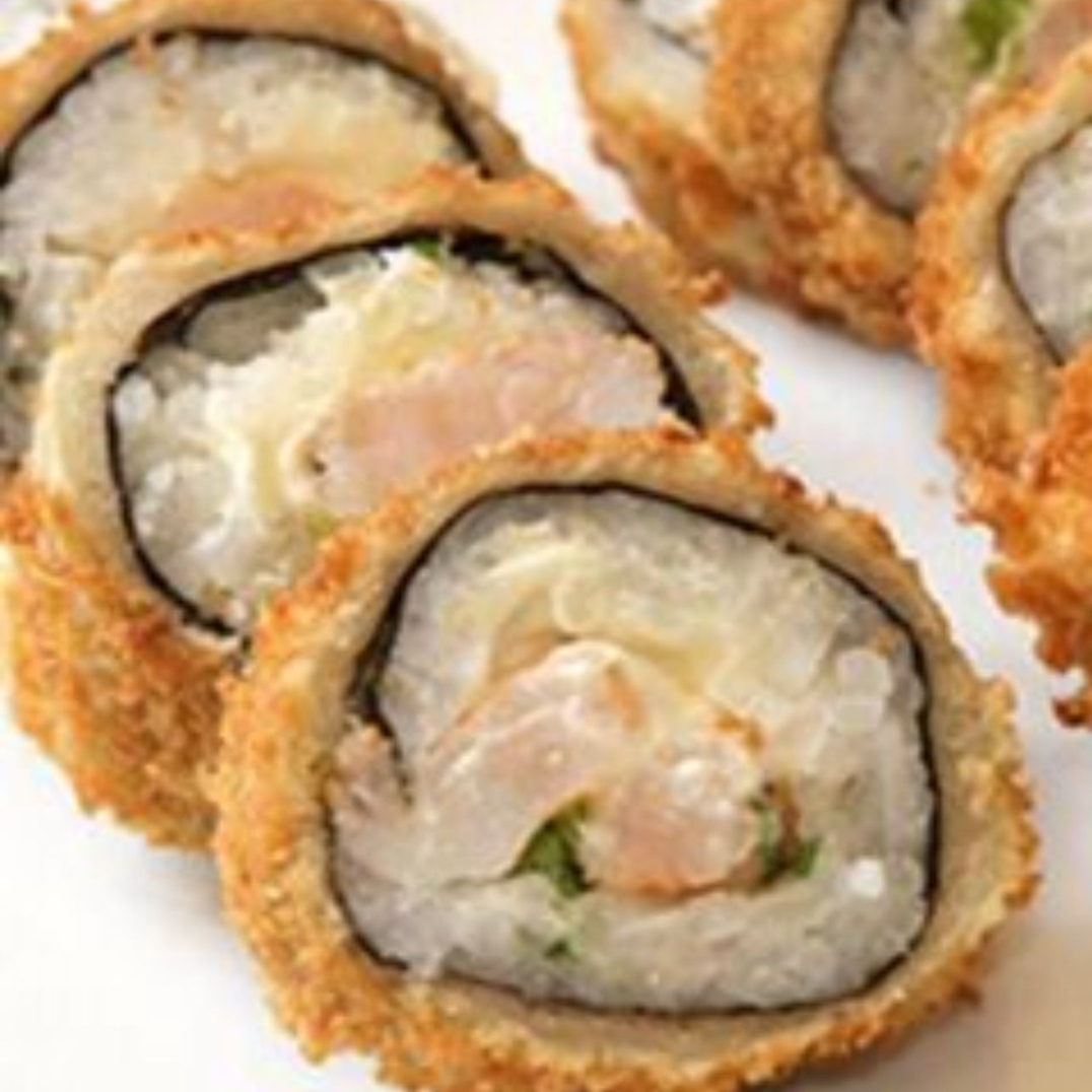 Nori, salmão c/ cream cheese, Arroz, Cebolinha enrolado e Frito na farinha panko