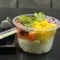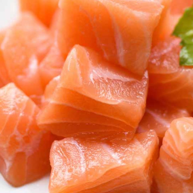uma mistura de salmão em cubos, camarão ,cebolinha e pra finalizar gergilin um sabor para surpreender