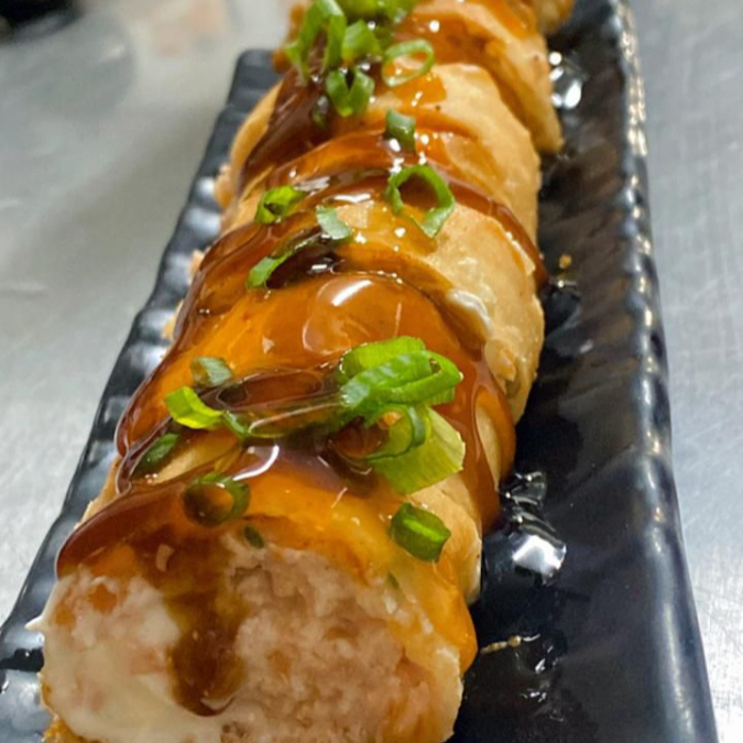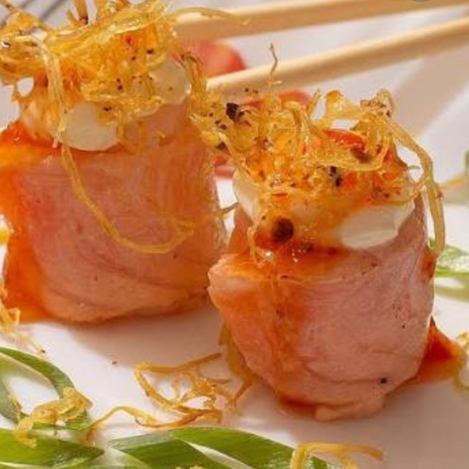Casquinha de harumaki recheada com salmão , cream cheese ,camarão e cebolinha esse prato é para pessoas exigentes ele entrega um sabor marcante que vai te surpreender