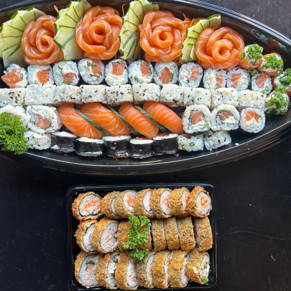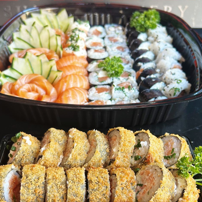 Este prato apetitoso inclui 20 fatias de sashimi, 4 sushis, 8 joe rolls, 20 uramakis e 20 hossomakis, repletos de sabor. Para completar a experiência, incluímos 36 peças de nosso irresistível hot filadélfia.