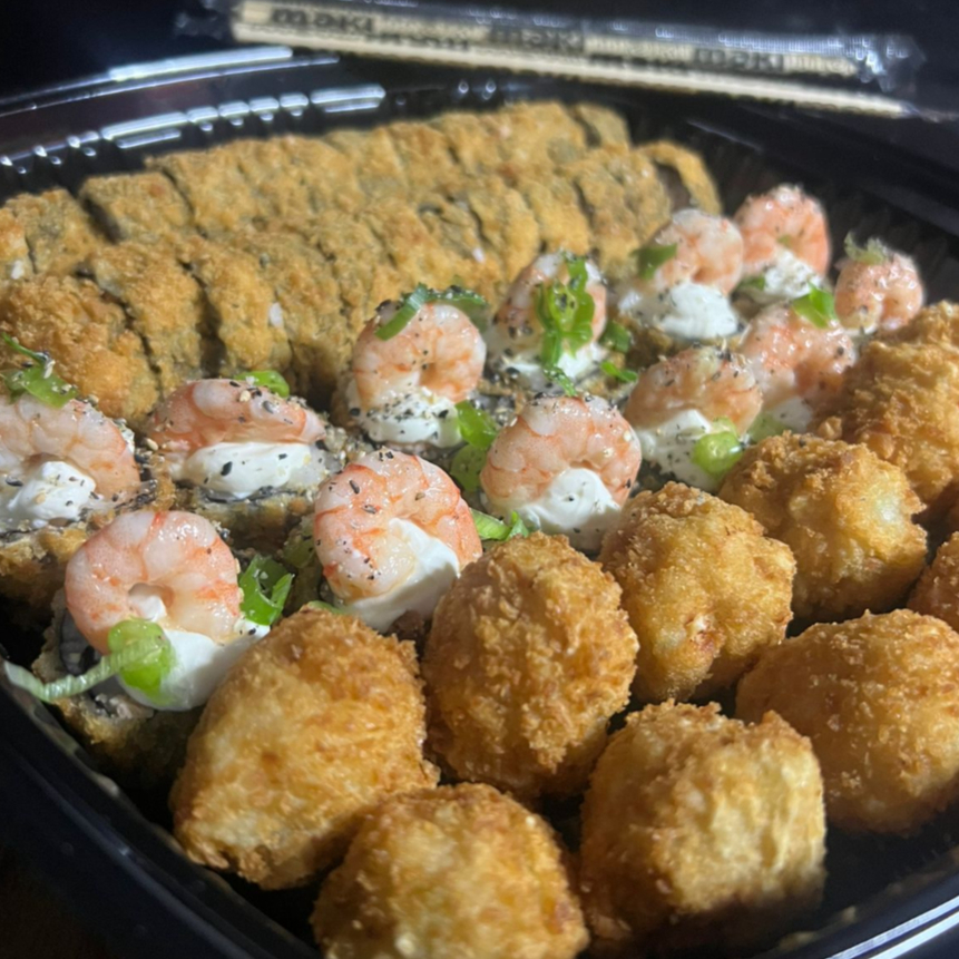 Nori, Camarão c/ cream cheese, Arroz, Cebolinha enrolado e Frito na farinha panko