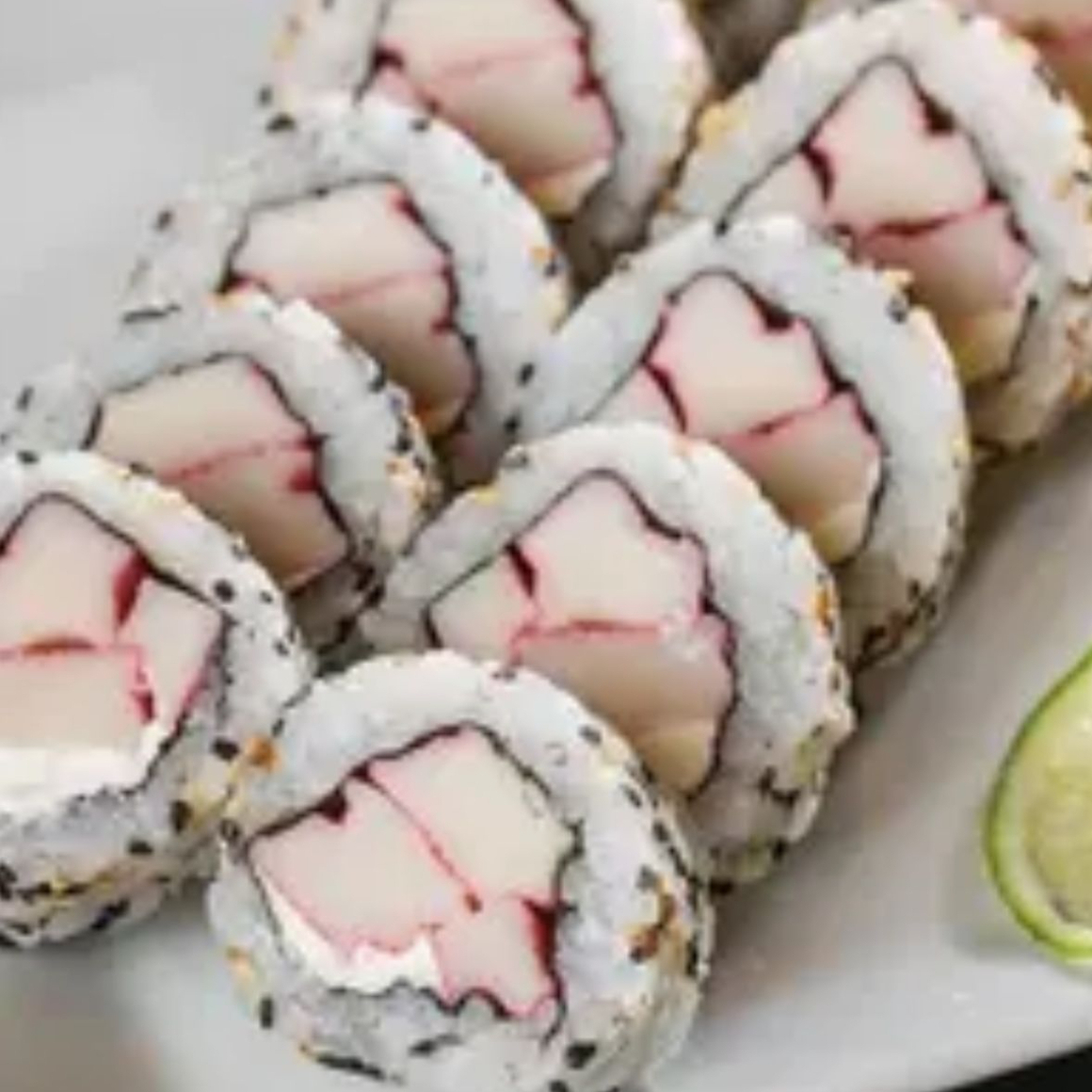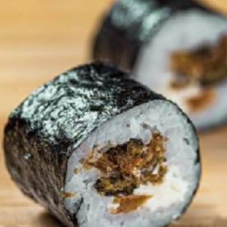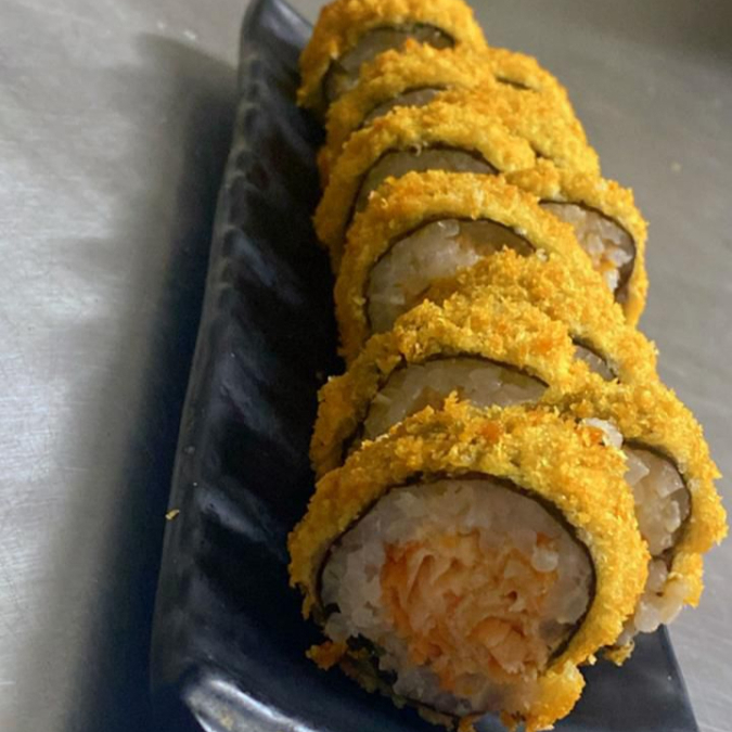 Enrolado de nori, arroz, carne de siri prensada , cebolinha e gergelim.