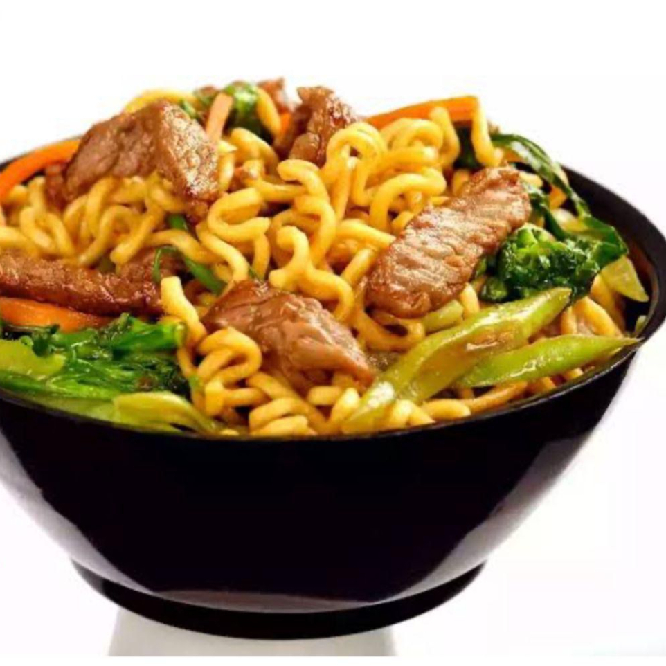 carne ,frango, repolho branco, repolho roxo, cenoura, brócolis e macarrão.
