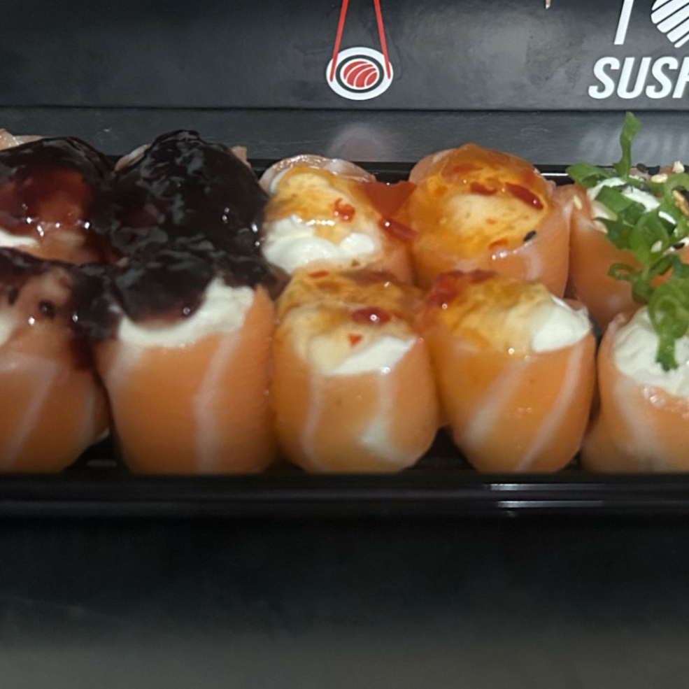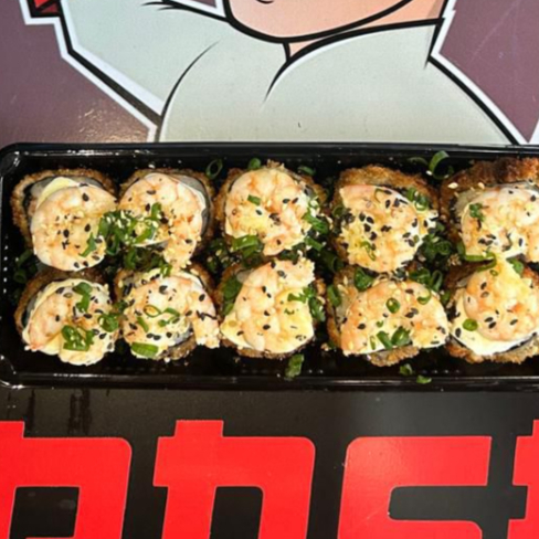 10 unidades de hot Filadélfia com Cream Chesse e camarão em cima uma mistura que vai te surpeender