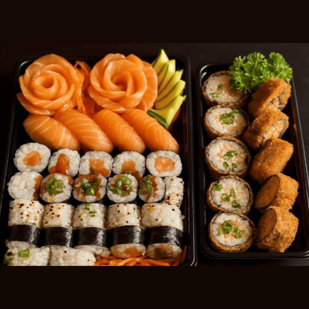 24 Hot Filadélfia 12 Hot Especial 12 Bolinhas de salmão 2 Harumaki de Camarão 2 Harumaki de Salmão 2 Harumaki Doce