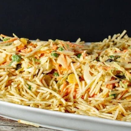 Deliciosa mistura de frango desfiado com uma seleção de vegetais crocantes, frutas frescas e um toque de maionese caseira. Um prato leve, saboroso e ideal para qualquer refeição.