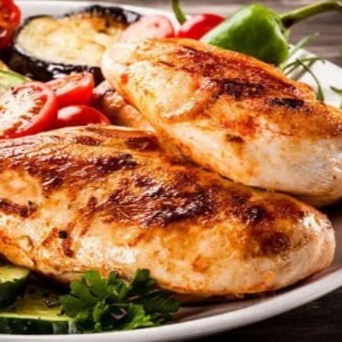 - Peito de frango grelhado, suculento - Escolha até 4 acompanhamentos - Escolha uma salada ou um complemento