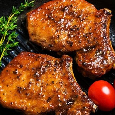 Um prato requintado preparado com suculentas costeletas de porco, marinadas em ervas e especiarias, e assadas até atingirem a perfeição dourada.