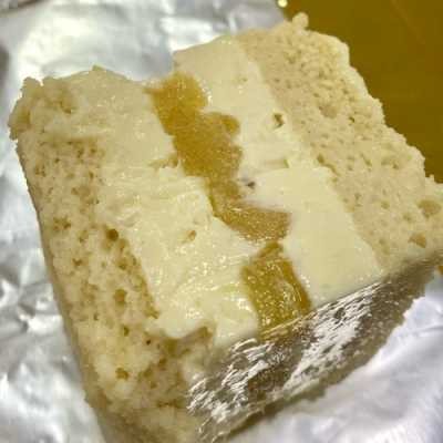 Massa molhadinha com recheio de coco cremoso e doce de abacaxi caseiro. Aprox 200g.