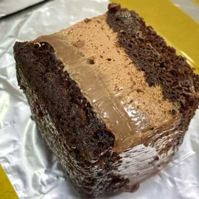 Massa de chocolate molhadinha com recheio cremoso de brigadeiro feito com chocolate nobre e mousse de chocolate.