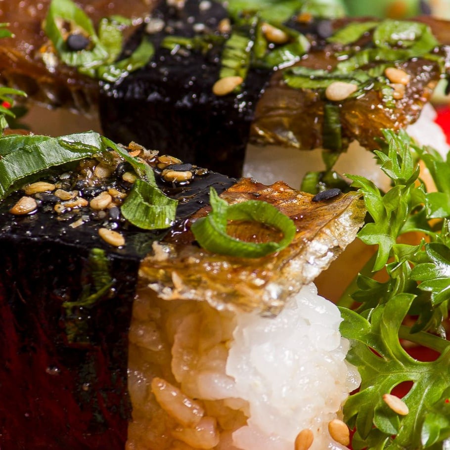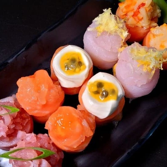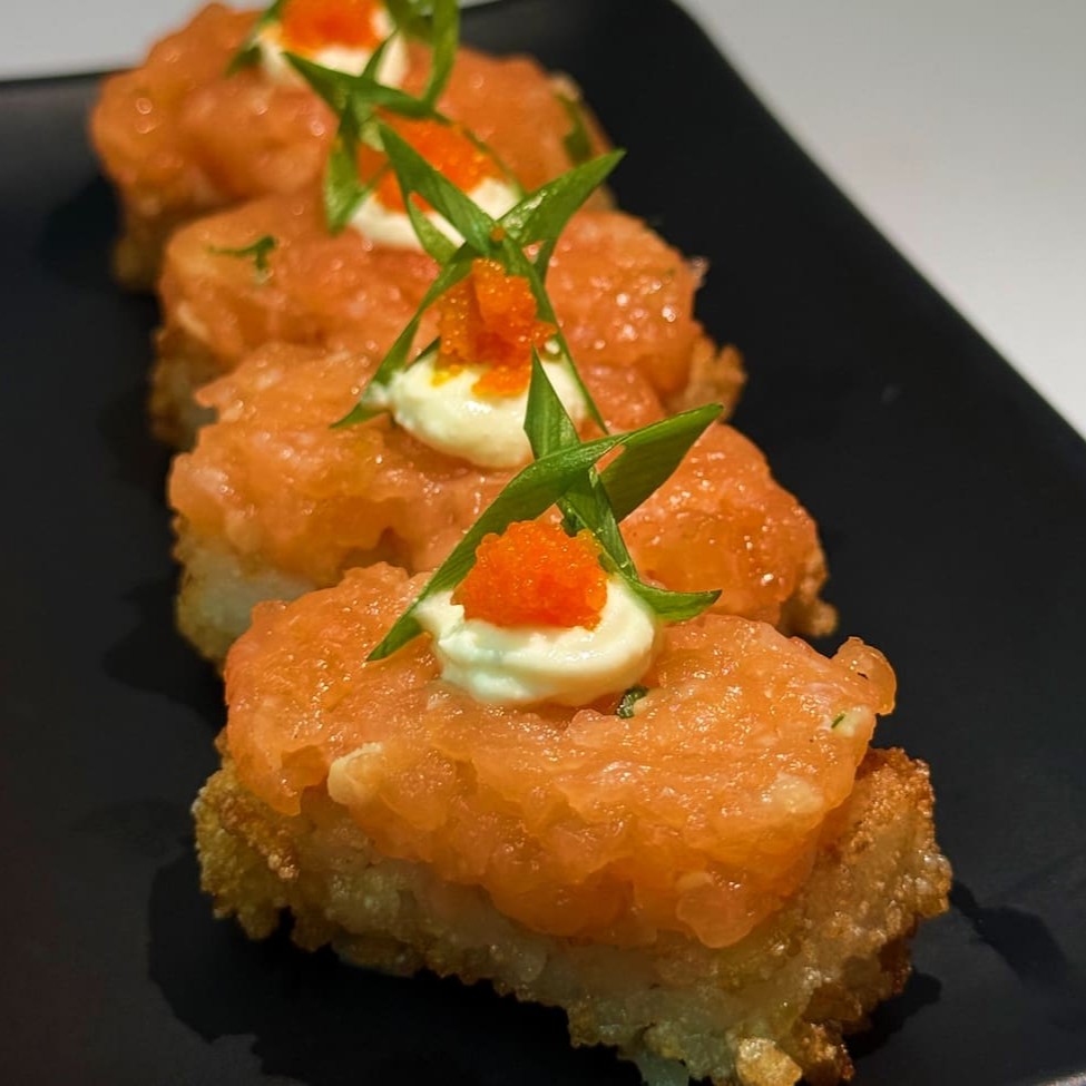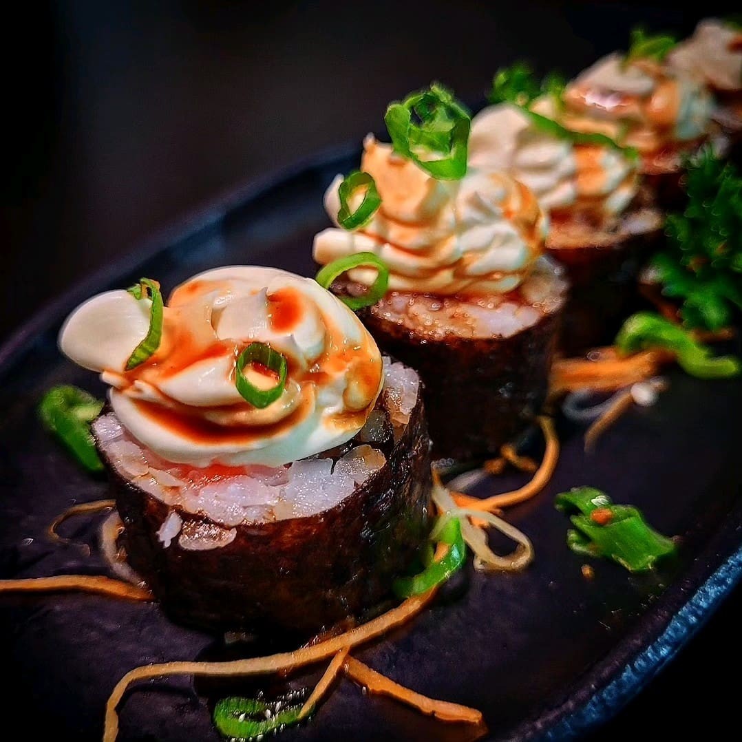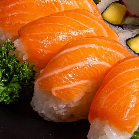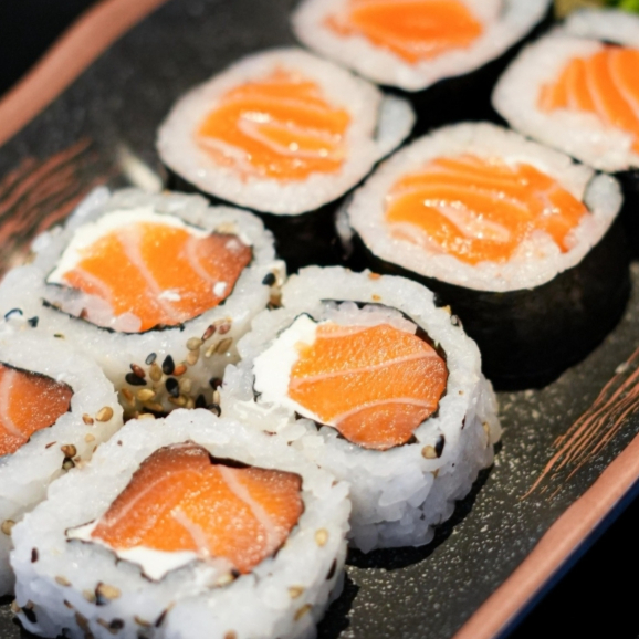 Sushi de salmão fresco finalizadas com um toque refinado de azeite trufado e flor de sal. Uma explosão de sabor que equilibra a untuosidade do peixe com a sofisticação do trufado e o realce delicado da flor de sal.