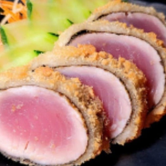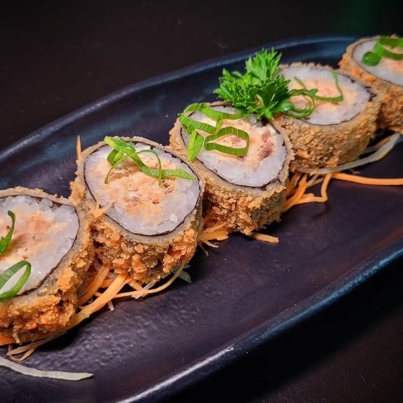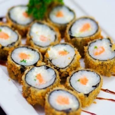 Sashimi de salmão empanado em farinha panko e frito.